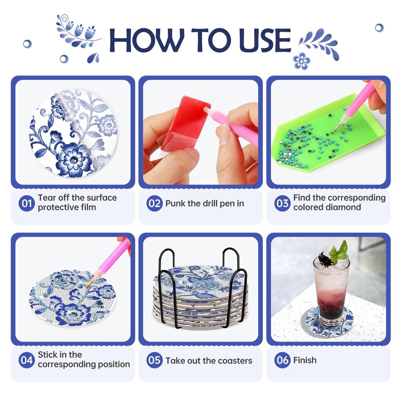 - Package Contents : Including 8pcs diamond art coasters, a handy holder, packs of 5D diamonds, a diamond tray, a wax and a pen. Perfect diamond art kits for adults, offer hours of fun and create a sparkling artworks