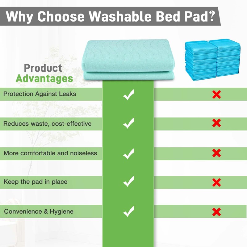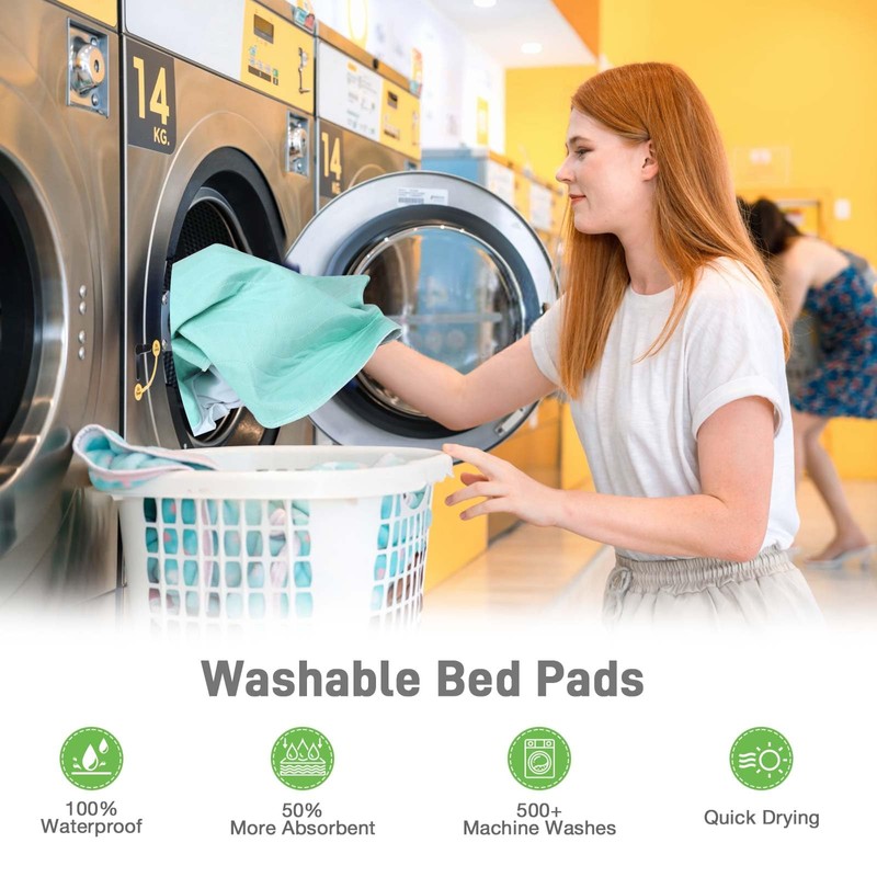 - Washable and reusable underpads: reducing the need for frequent purchases of disposable pads, machine wash cold, no bleach