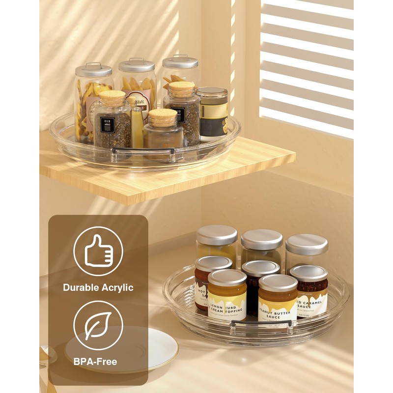 - Two 1-Tier + One 2Tier Lazy Susan Organizer : All 3 Clear Lazy Susan Organizer Turntable enhances your storage solutions by maximizing cabinet space to your kitchen essentials, spices