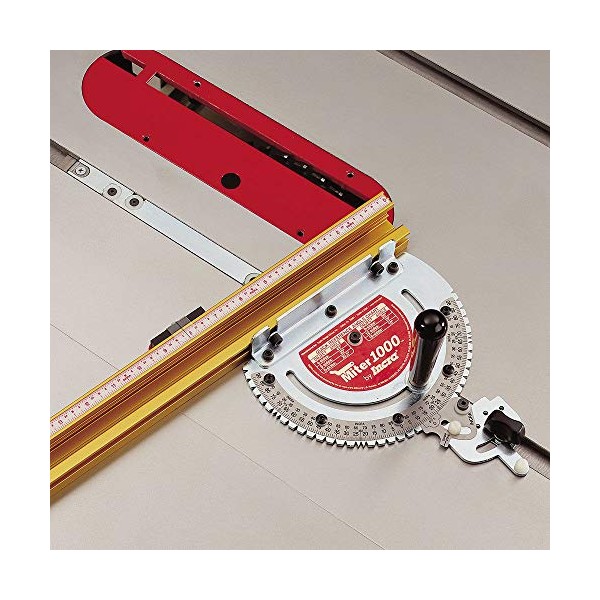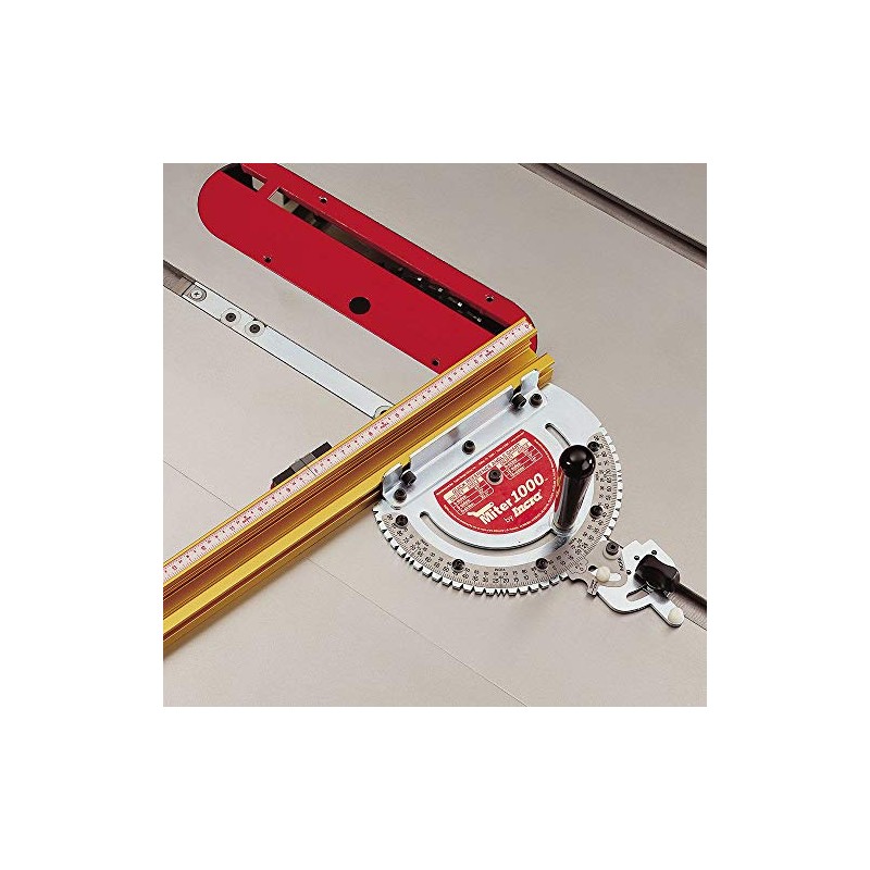 Other features include a standard miter head, a GlideLOCK miter bar with width that is adjustable in 6 places, an 18-inch track fence, and a sliding stop positioner. The Miter Gauge also has six expansion points that allow for adjustments to both sides of the bar for ZERO side play, and anti-friction travel. Working with all table saws with standard (or near standard) 3/4-by-3/8-inch miter gauge channels, including Delta, Craftsman, and imports. Whether it's your basic 90-degree cut-off, simple pictures frames, complex compound miters, or a 20-sided object, the Miter 1000 delivers perfect repeatable accuracy every time. This product also comes with a 1-year limited warranty.