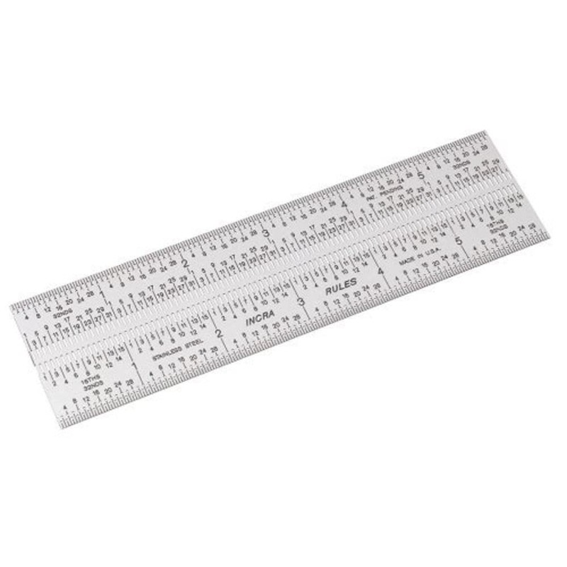 INCRA Precision Marking Rules. At first glance you might think you are looking at an ordinary ruler. But look closer and you will see micro-fine marking holes and slots every 1/16", 1/32" and 1/64" to instantly locate a sharp pencil point or scribe EXACTLY where you want it. No more squinting as you try to line up your pencil on that blur of lines along the edge of your old steel rule. Even when the lighting is less than perfect, you can effortlessly place your mark precisely on target with zero uncertainty, zero parallax and zero eye strain. Who would have thought there was so much room for improvement in the common ruler. There WAS and INCRA RULES is it! Available in 6", 12" and 18" lengths. Engraved stainless steel.
