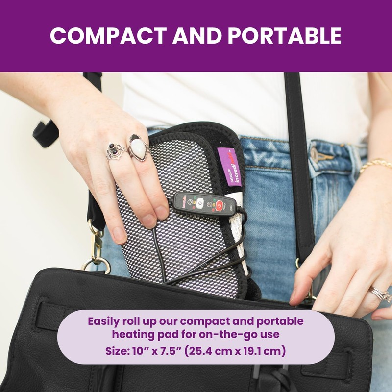 - Compact Heat on the Go: Incredi-Heat can be easily rolled up since it’s compact and portable at 10” x 7.5” (25.4 cm x 19.1 cm). Take our heating pad on the go to use in the car, on an airplane, at the office, or anywhere you need compressed heat therapy.