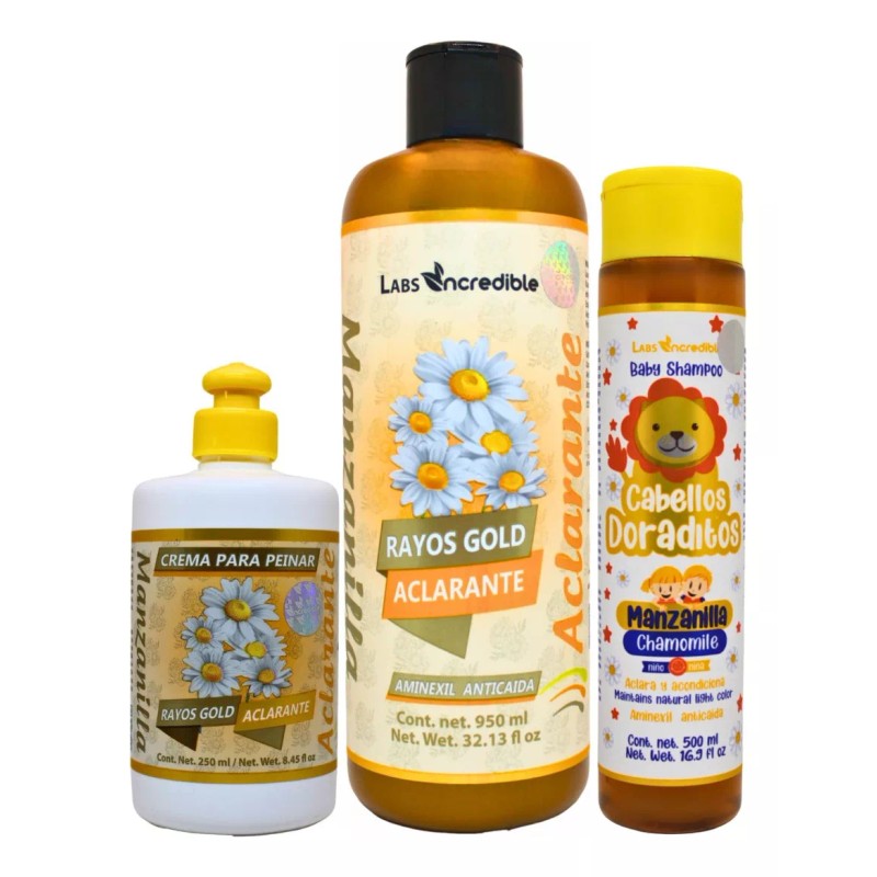 Incredible Kit Shampoo Manzanilla Gold + Crema Peinar + Shampoo Kids