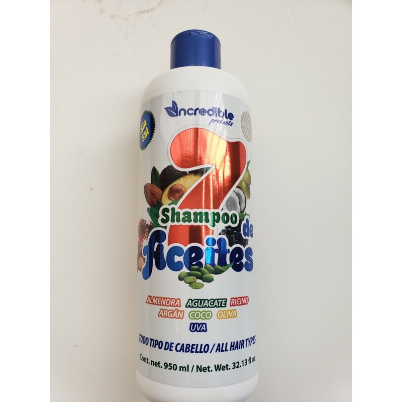 Incredible Shampoo De 7 Siete Aceites, Argan, Almendra, Coco, 950ml 32 Fl All Hair Types