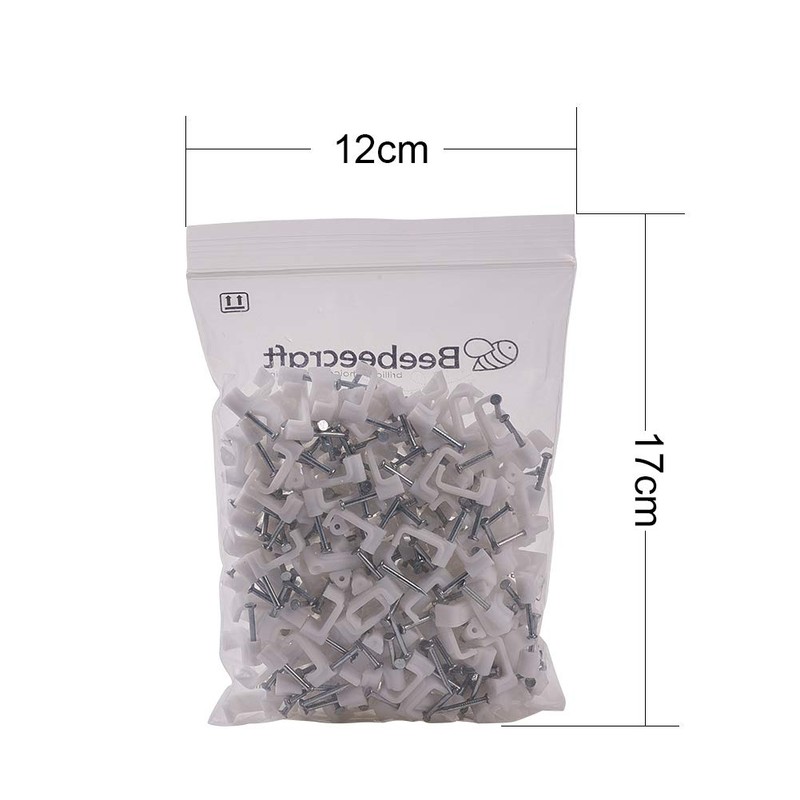 - 【FEATURE】 - Flat plastic cable clips are weather resistant that can protect insulation. Completed with corrosion resistant hardened nails to secure cable to wood, cement, plaster, brick, etc.