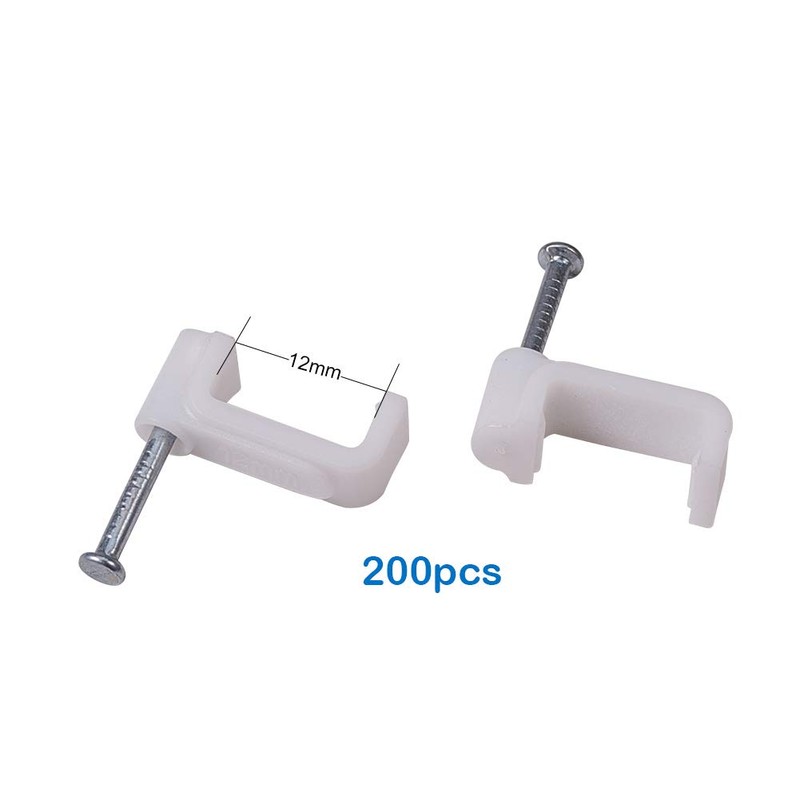 INCREWAY 200Pcs 12mm Flat Cable Wire Clips Cable Staples Cord Holder Wire Management, White