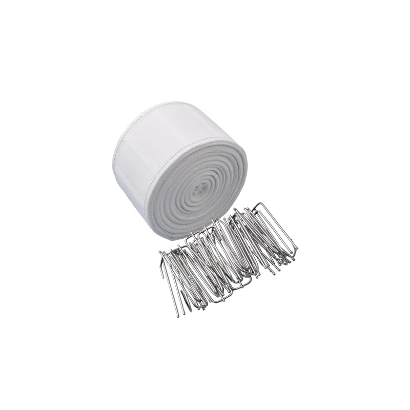 3、10 Meters/10.9 Yards White Curtain Tape and 30 Pcs Stainless Steel End Tape Hooks Clips are included. But no other hooks are included, please note before ordering.