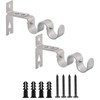 INCREWAY Curtain Rod Bracket, 2pcs Silver Sturdy Adjustable Double Curtain Rod Brackets Curtain Rod Holders Curtain Holdbacks