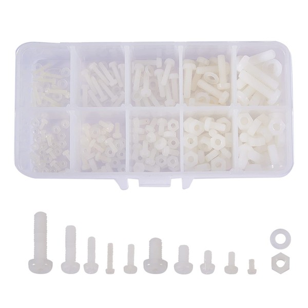 INCREWAY M2 M2.5 M3 M4 M5 300pcs Nylon White Screw Nut Washer Assortment Kit