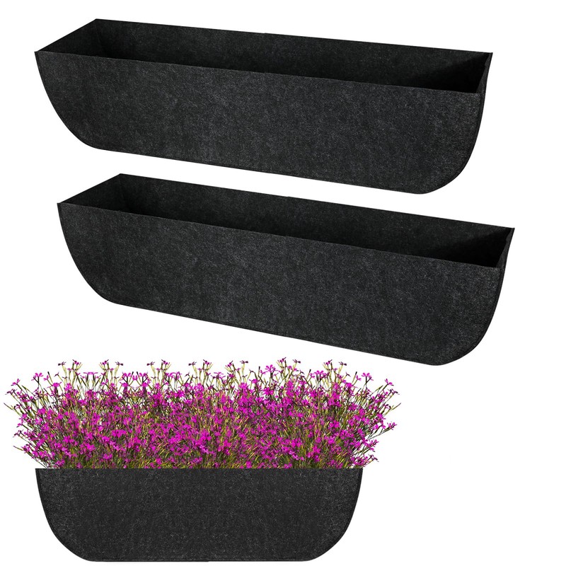 Incycall 2-Pack 24in Planter Liners - Breathable Felt Hanging Basket and Window Box Liners - Prevent Root Suffocation and Bird Damage - Black