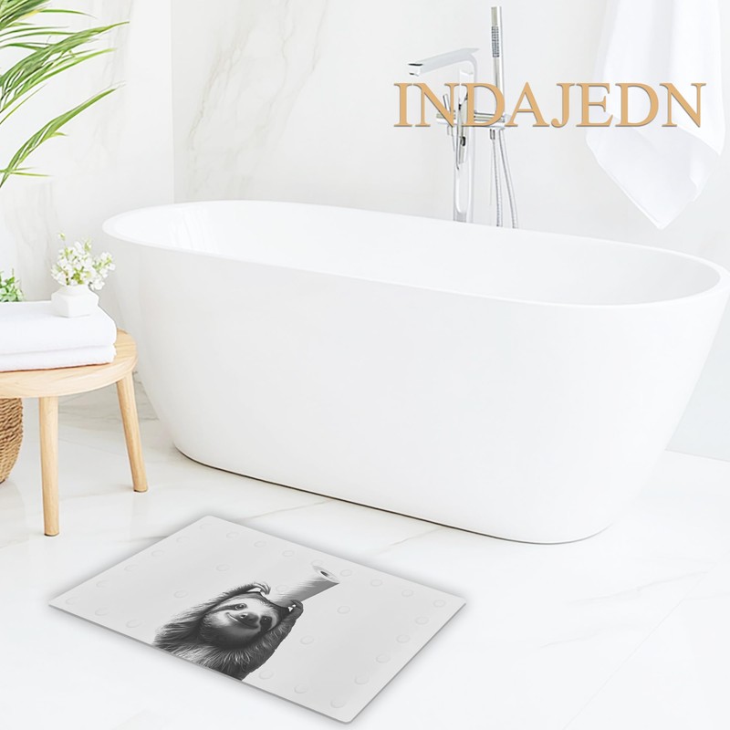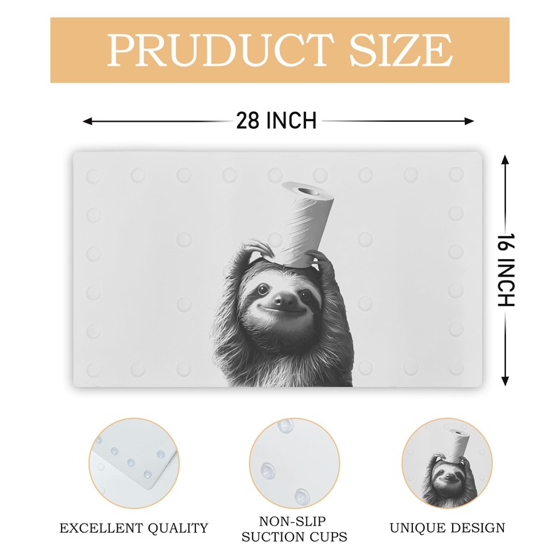 INDAJEDN Funny Sloth Bathtub Mat Non Slip 15.7x27.6 Inch, Bath Shower Mats for Tub Kids Adults Bathroom Floor with Drain Holes and Suction Cups, Sloth Decor, Machine Washable