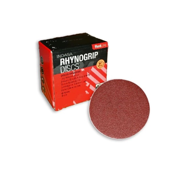 Indasa 3" Rhynogrip Red Line Solid Sanding Discs, 320 Series, are the ideal solution for a variety of sanding applications. Perfect for heavy sanding, preparatory sanding, fine sanding, blending, rectification, and micro-finishing, these discs are designed to prepare surfaces for a flawless finish. With their 3" size, these discs are perfect for detailed tasks like wheel rim repair, headlight restoration, wood furniture refinishing, and working on smaller surface areas. Their hook-and-loop grip backing ensures easy attachment to compatible backup pads, providing a secure and efficient sanding experience. Crafted with high-quality aluminum oxide grains and a lubricant coating, the RedLine series is designed to resist clogging and deliver consistent, powerful performance. Available in a wide grit range (40 to 2,000), they provide excellent cutting power, stock removal, and long-lasting durability for both rough and delicate surfaces. Indasa 320 Series Sanding Discs come in convenient packs of 50, offering great value and reliability for your sanding needs. Whether you're working on a tough job or a delicate project, these discs are built to help you achieve precision and smooth, high-quality results.