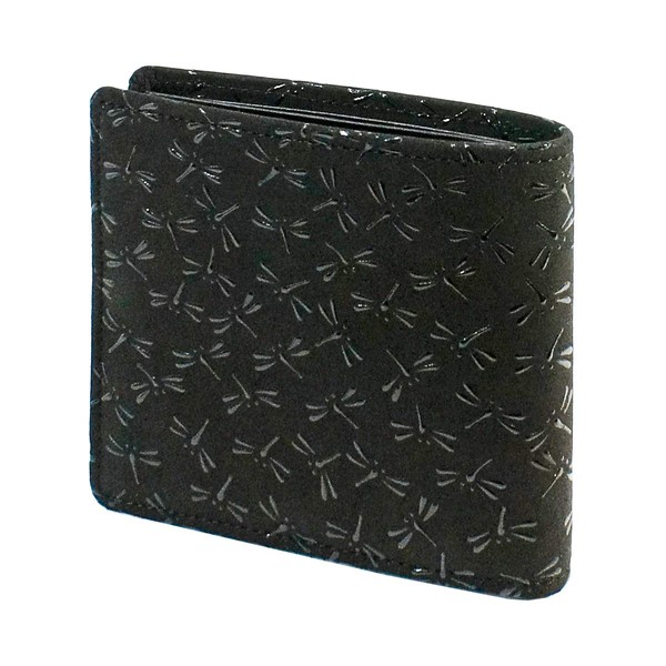 [Indenya] 2005-01-008 Billfold Wallet I No Coin Purse Deer Leather Black Background x Black Lacquer Dragonfly Pattern, black