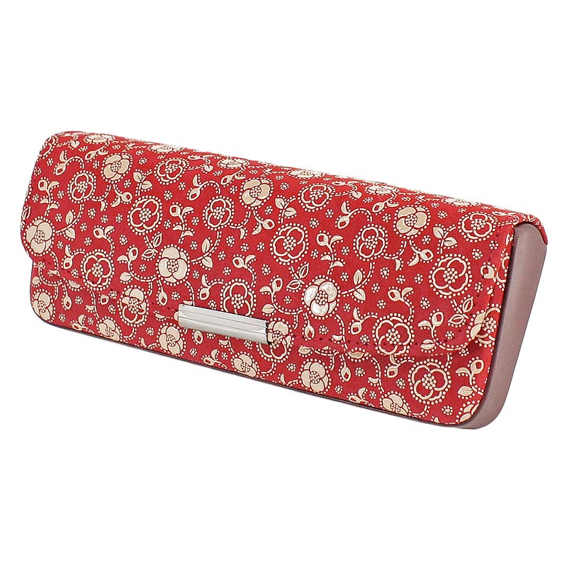 Indenya 4206-13-178 H Glasses Case, Deer Leather, Red Background x White Lacquer, Camellia Pattern, multicolor (red / white)