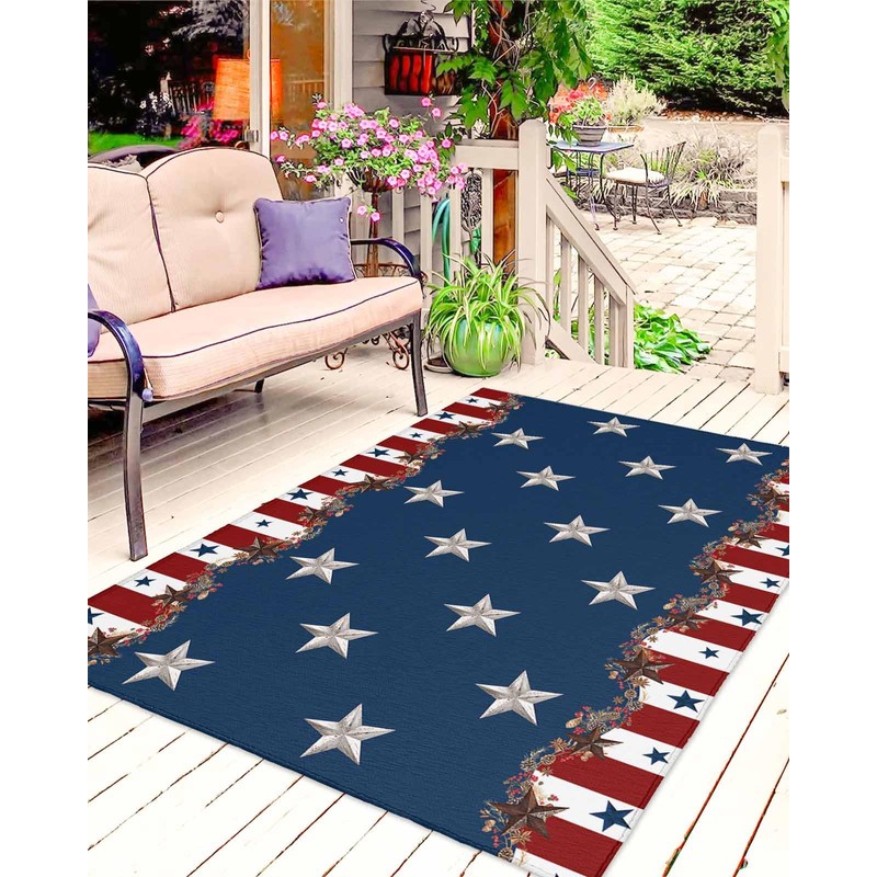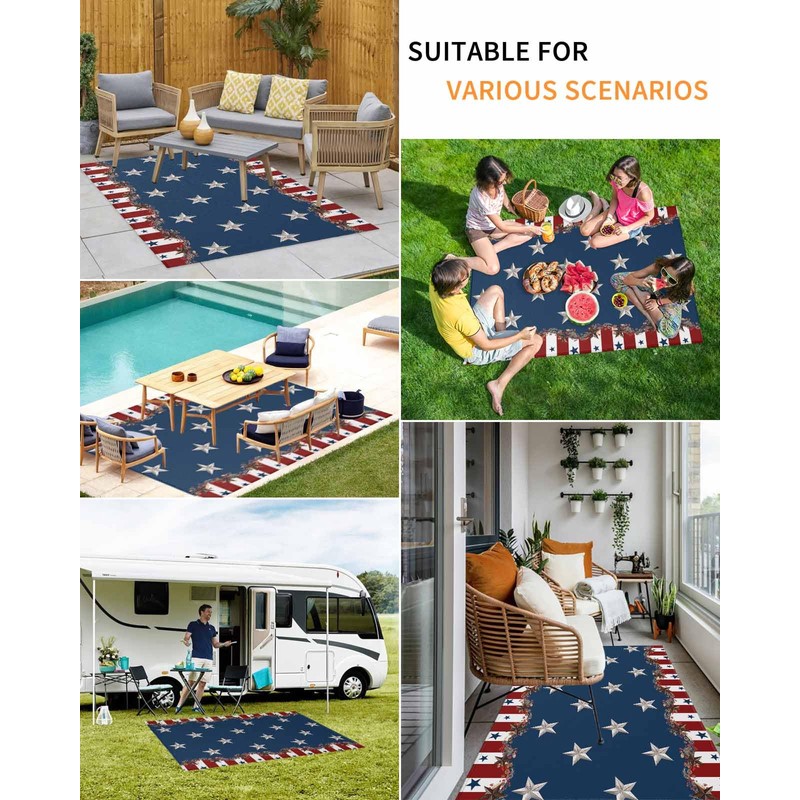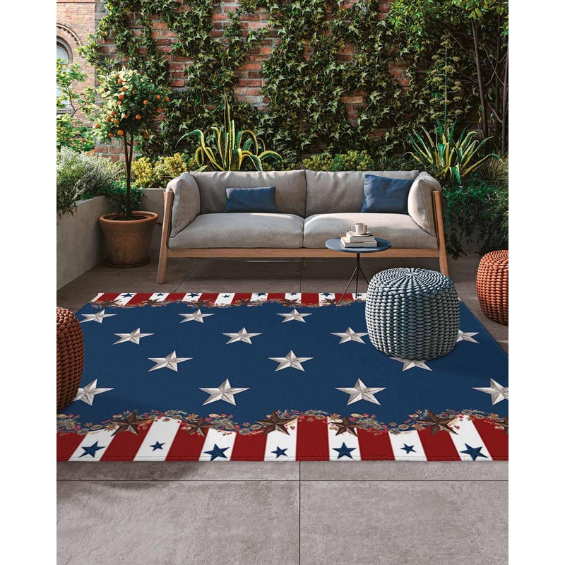 Independence Day Country Star Outdoor Rug 4x6ft, Waterproof Indoor Outdoor Rug for Patio, 4th of July Camping Carpet Mat Outside Area Rug for RV Picnic Beach Balcony Deck Backyard