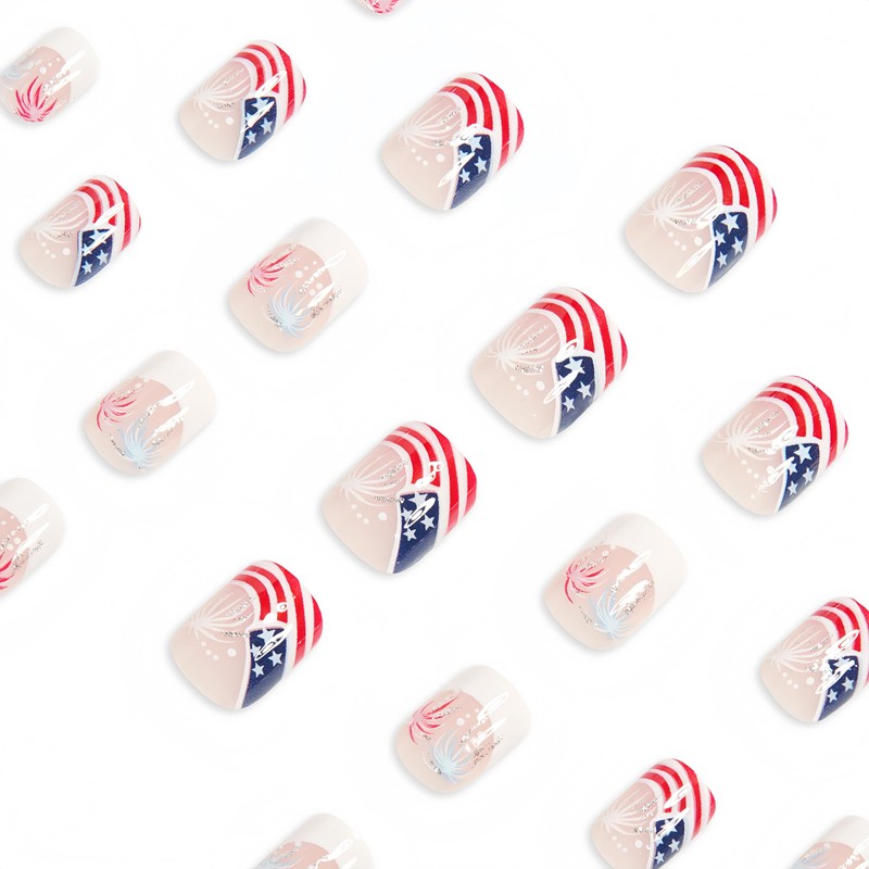 - Easy to Use:Independence Day firework fake nails with glue sticker can get your favorite manicure in just 5 minutes without waiting at the nail salon. Some simple steps allow you to get the same impressive professional effect at home
