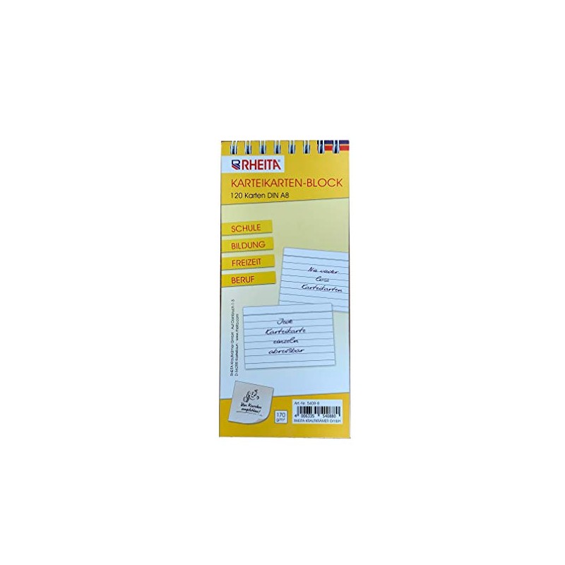 Index Card Pad Lined DIN A8 with 120 Cards 170 g/m² Ideal for School Education Leisure and Work