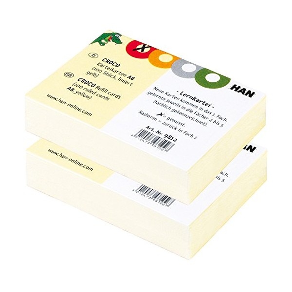 Index Cards for Croco DIN A7, Yellow, Pack of 200, Lined, 190 g/m²