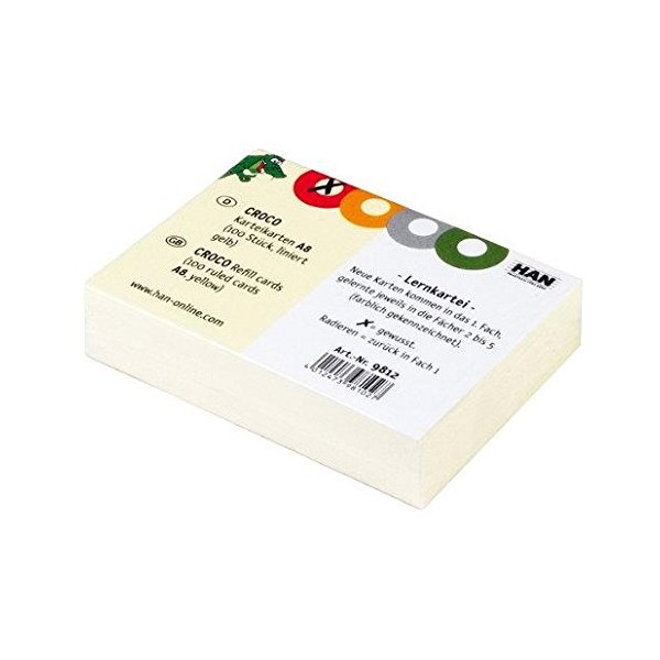 Index Cards for Croco DIN A8, Yellow, Pack of 400, Lined, 190 g/m²