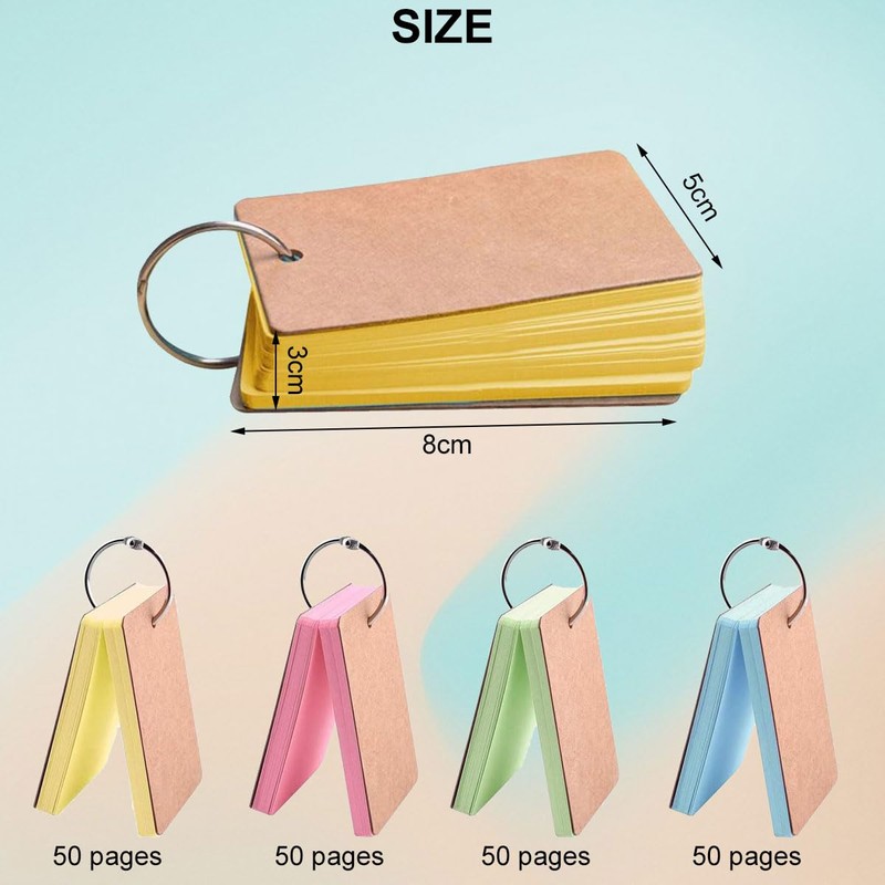 - Card cards with ring vocabulary cards: you will receive 4 portable notepads in yellow, green, blue and pink. Each notepad has 70 pages, which is enough for daily use.