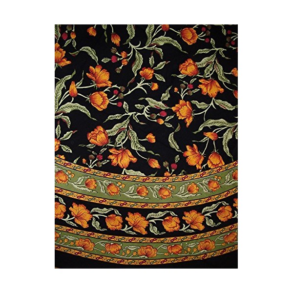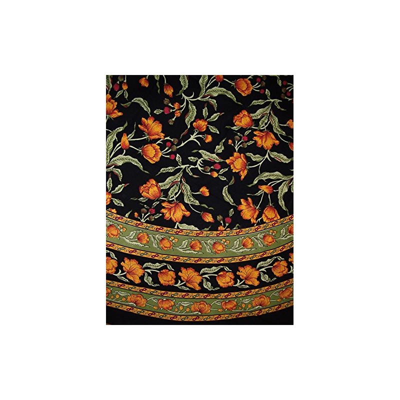 India Arts French Floral Round Cotton Tablecloth 88" Amber on Black