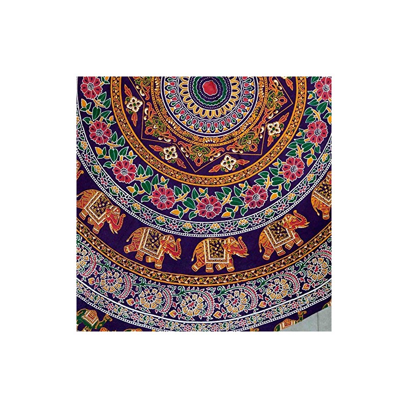 India Arts Handmade 100% Cotton Elephant Mandala Floral 81" Round Tablecloth Burgundy Mustard Orange Green