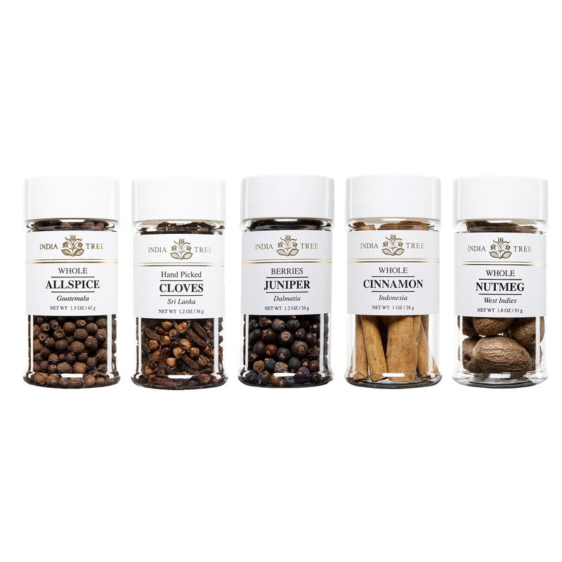 - Celebrate the Winter Holidays: Embrace the festive season with India Tree's Winter Holiday Spice Gift Pack. This carefully selected collection includes five aromatic spices - Indonesian Cinnamon, Traditional Nutmeg, Sri Lankan Cloves, Jamaican Allspice, and Dalmatian Juniper Berries.