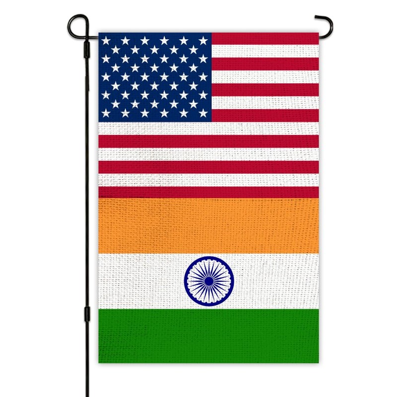 India USA Friendship Garden Flag12x18 in Burlap Indians America US Outdoor Banner for Patio Yard with Double Side