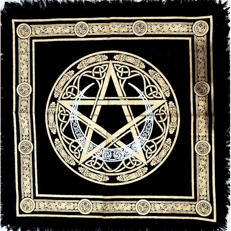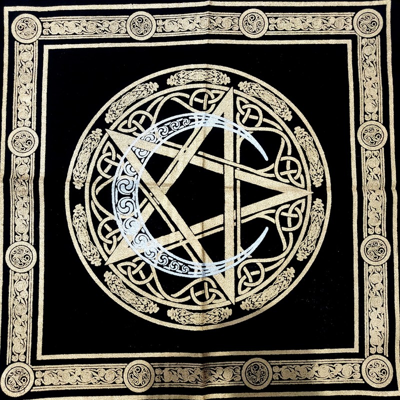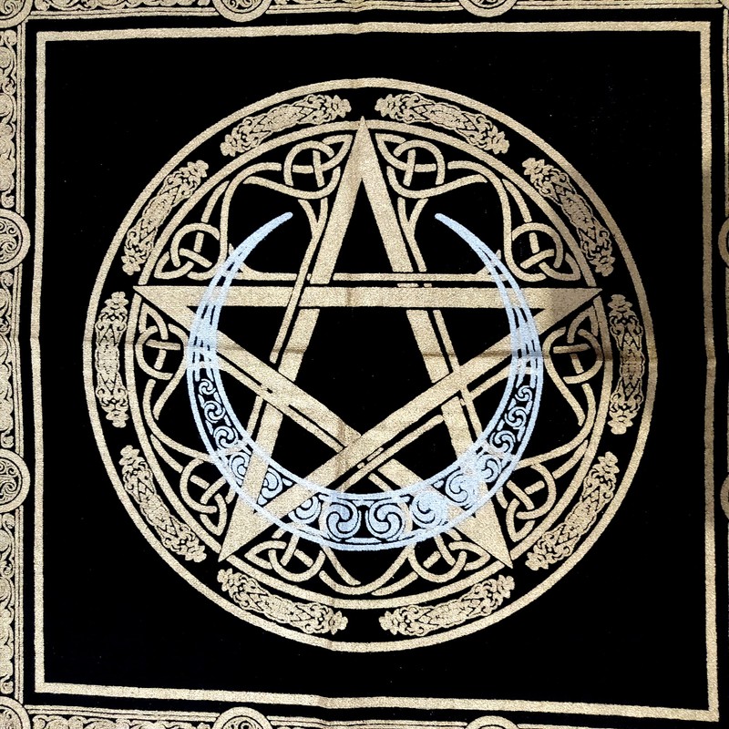 INDIAN CRAFT CASTLE Altar Cloth Crescent Pentagram Witchcraft Alter Tarot Spread Top Cloth Wiccan Square Spiritual 36 by 36 Sacred Cloth Crescent Pentagram
