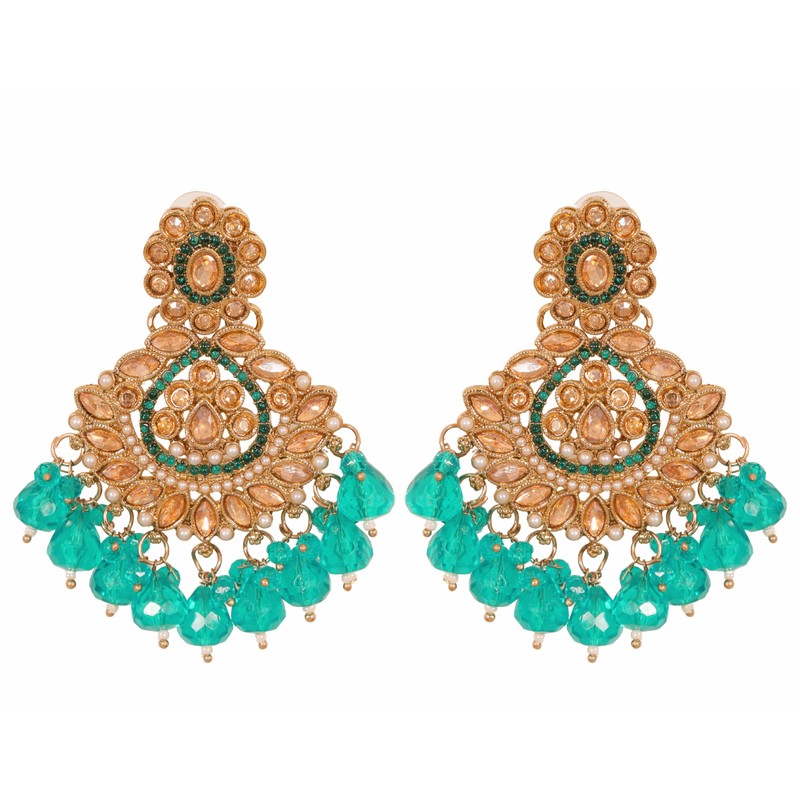Indian Gold Earrings for Women Indian Gold Pearl Kundan Ethnic Traditional Party Jhumka Dangle Earrings Jewelry Women (BLUE GREEN)
