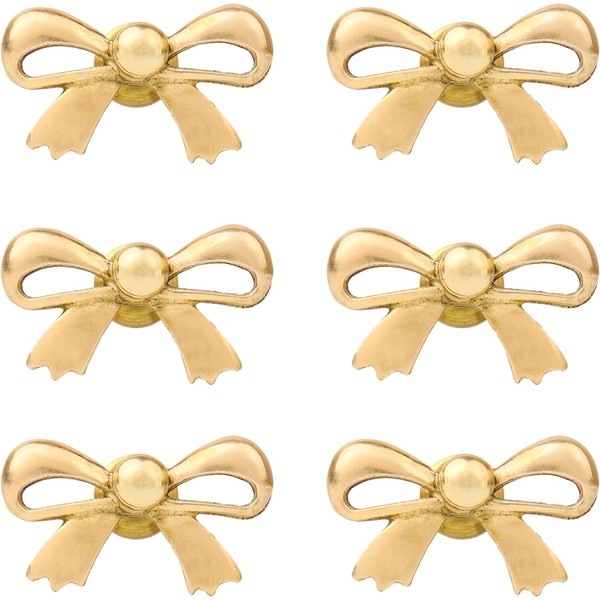 Indian Shelf Solid Brass Gold Bow Drawer Knobs (6 Pack) - Premium Coquette Dresser Pulls for Nursery & Cabinets - Secure Anti-Spin Design