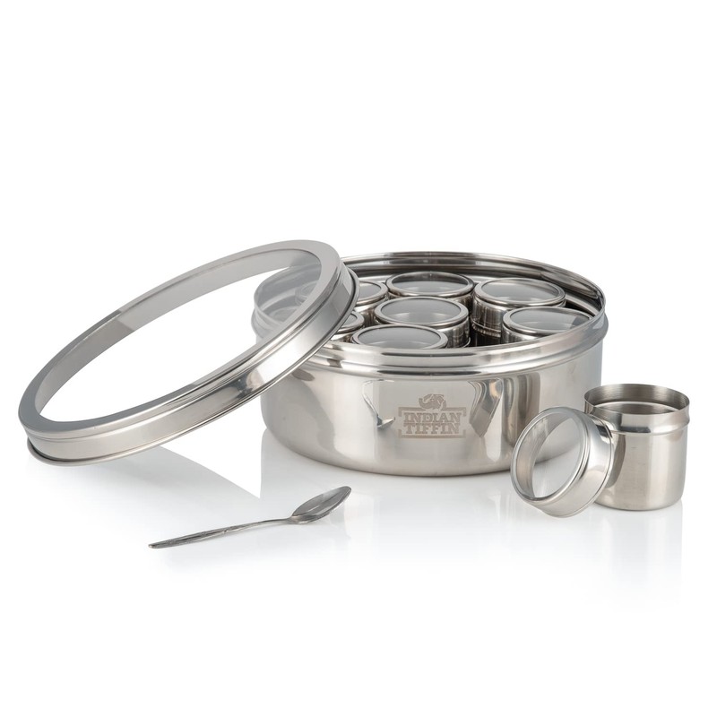 - Classical Masala Dabba (Spice Box) as used in India for generations Designed and exclusive to Indian Tiffin, developed after years of experience selling Masala Dabbas