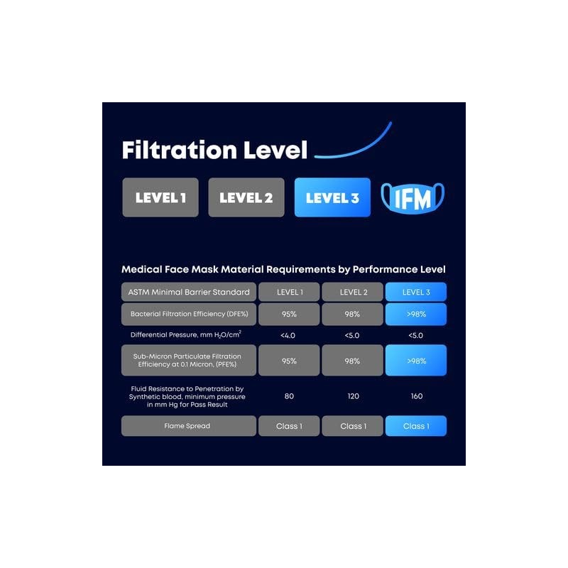 - PROTECTION: ASTM Level 3 the highest rating a surgical face mask can recieve
