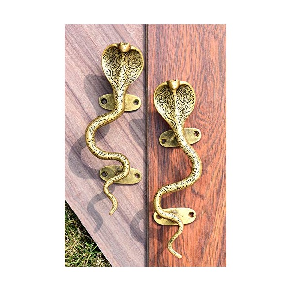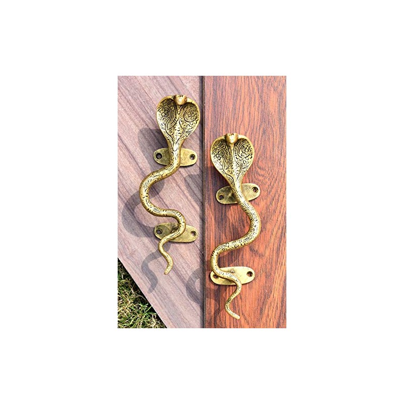 IndianShelf Handmade 1 Pair Cobra Vintage Golden Brass Door Handles Cabinet Pulls for Kitchen