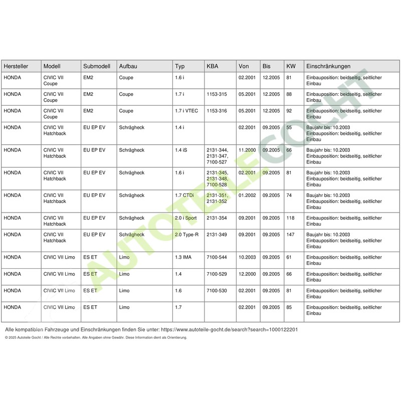 OEM number: 34301-S5A-003 / 34301-S5A-013.