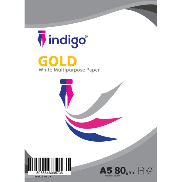 Indigo® A5 White Multipurpose Copier 80GSM (100 Sheets of Paper, White)