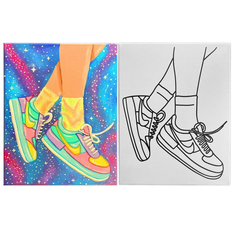 INDIGO ART STUDIO Pre Drawn Canvas Paint Kit for Adults Couples | 2 Pack Bundle | Sneakers Him Her | DIY Birthday Gift & Sip and Paint with Twist Party Favor (Sneakers Bundle #1, 2 Pack 11x14)