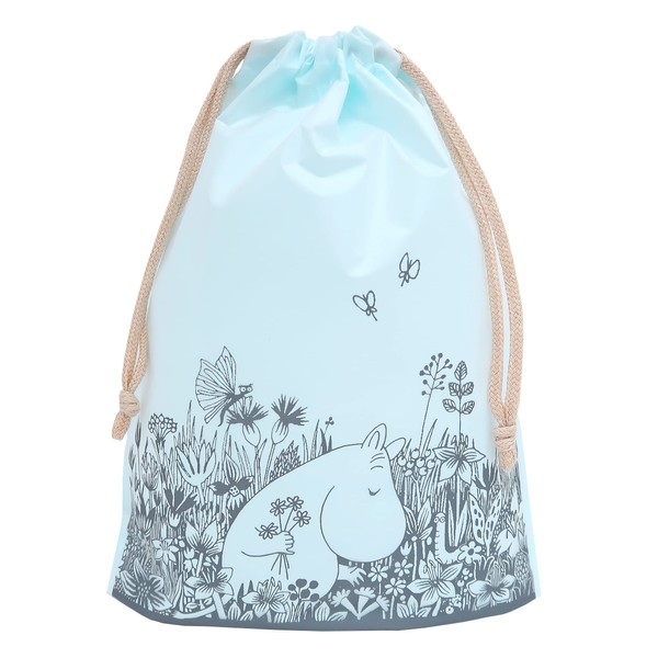 Indigo MOOMIN MV242 Moomin Wrapping Plastic Bag, S, Drawstring Flower Garden/Light Blue