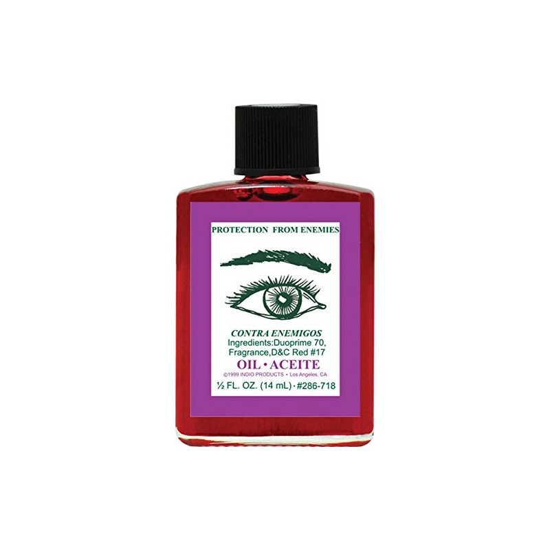 1/2 fl. oz. (14.7ml) Use Indio Protection From Enemy Fragranced Spiritual Oil to protect yourself from any harm or evil spells or hexes from enemies. Oils can be used to dress candles it could be use on the body and or to make any kind of rituals. *