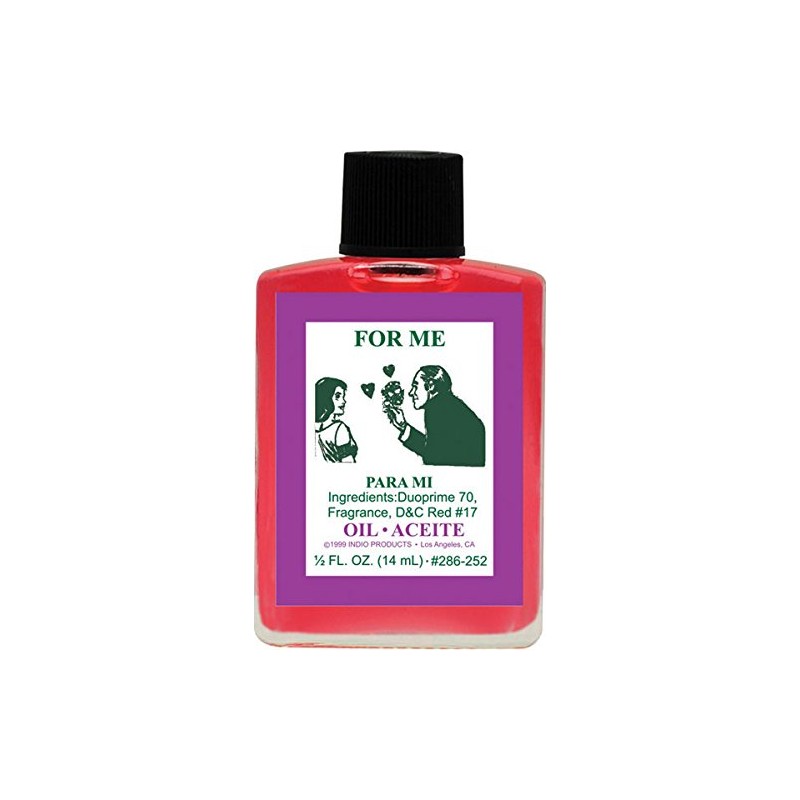1/2 fl. oz. (14.7ml) Use Indio For Me Fragranced Spiritual Oil to have the desire person have eyes only for you. Oils can be used to dress candles it could be use on the body and or to make any kind of rituals. *
