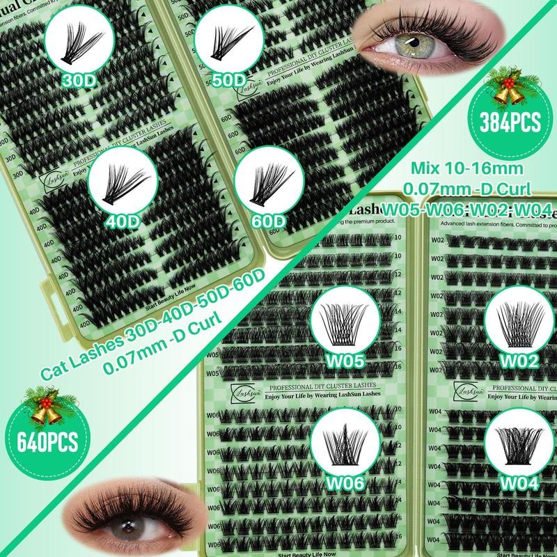 Individual Eyelash Extensions Kit, 1 Set Mixed Length & Style False Eyelashes with Tweezers & Glue & Remover, Professional Eye Enhancement Tools