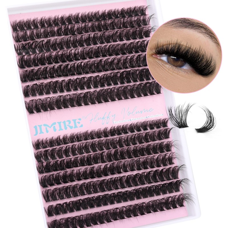 - 80D D Curl Wispies - JIMIRE volume lash clusters 280pcs 9-16mm length mixed, achieving a fluffy lash extension look easily. Perfect D curl curvature can lifting your eyes which will look more bright and bigger.