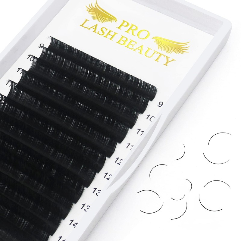 - Pro Lash Beauty individual eyelashes: 0.03 mm, 0.05 mm, 0.07 mm for volume eyelashes, 0.10 mm, 0.15 mm, 0.20 mm for 1:1 technique. Curl: C/D. Lengths: 8–15 mm.
