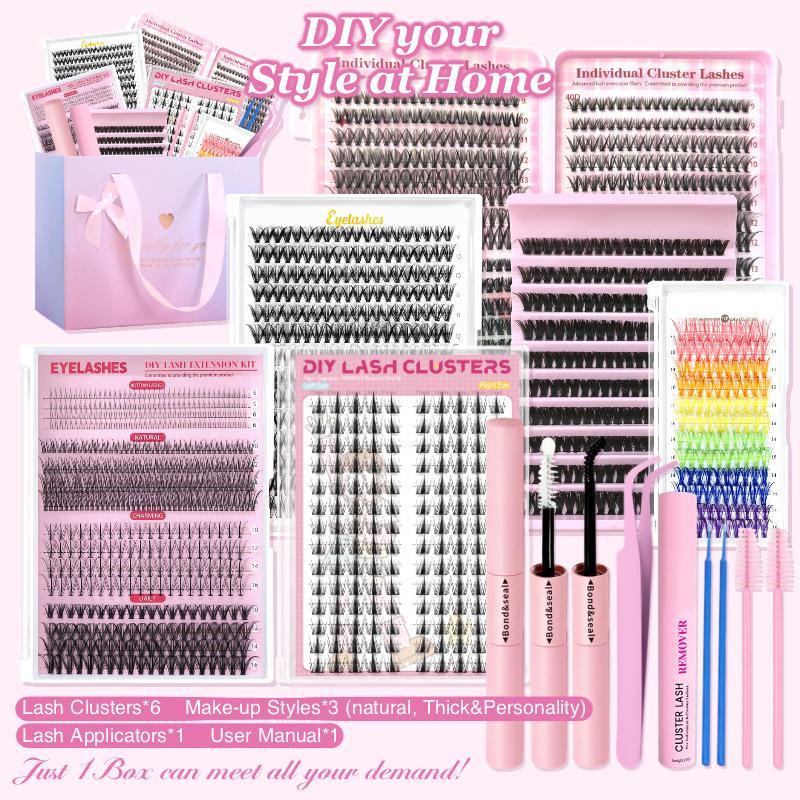 Individual Lashes with Tools, 1 Set Natural Look Eyelash Extensions, Self Grafting Curl Eyelashes with Eyelash Tools, Eye Makeup Enhancement False Eyelashes, Christmas Gift