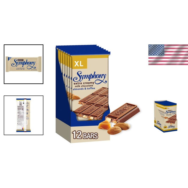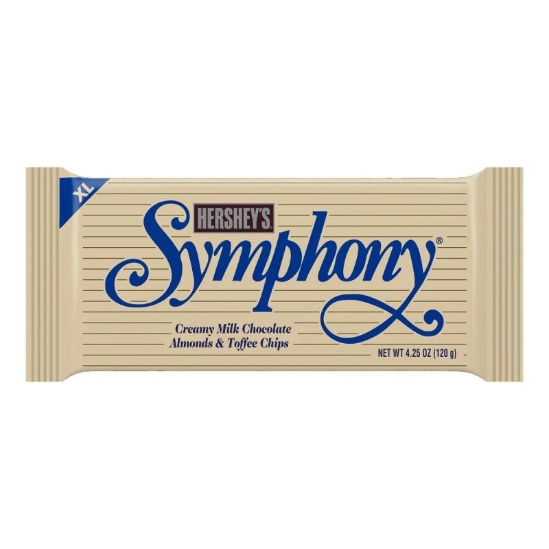 Experience the brilliance of a symphony in every bite. Each SYMPHONY XL candy bar offers a harmonious blend of rich, creamy milk chocolate, crunchy almonds, and buttery toffee—a perfect combination that sings in delightful unison.