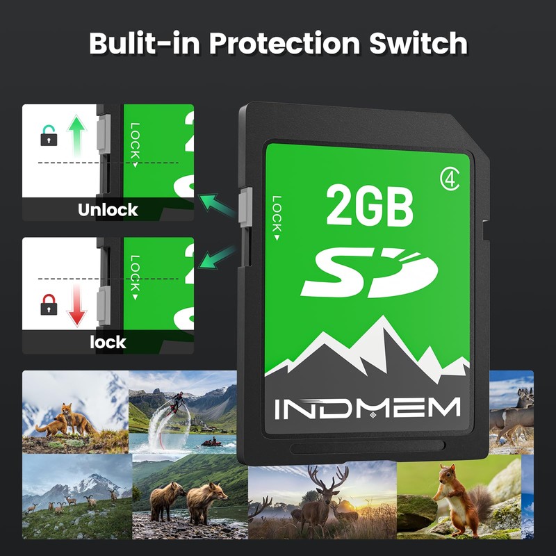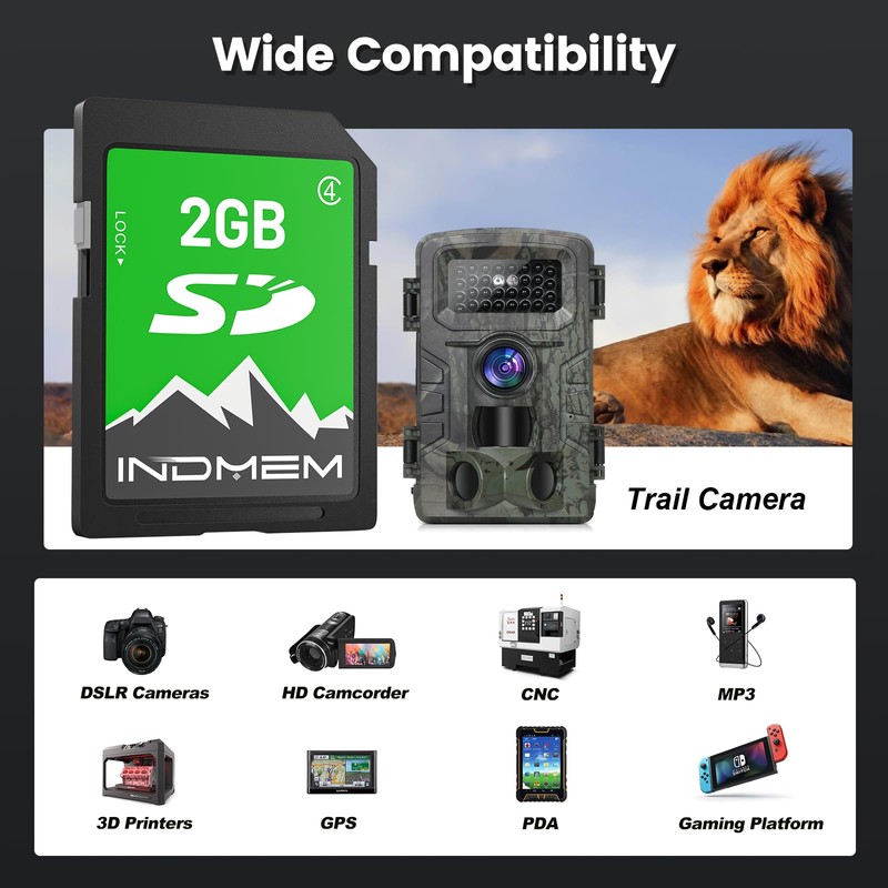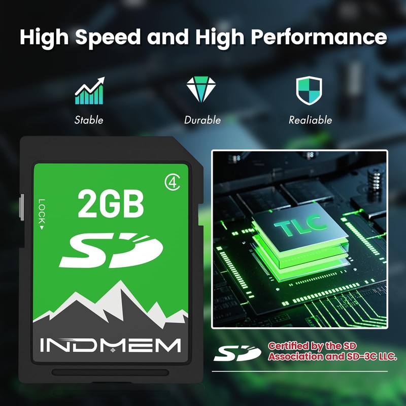 INDMEM INDMEM 2GB SD Card, 2GB Class 4 Flash Memory Card 2G SLC Standard Secure Digital Cards for Old Digital Camera and Trail Camera(1Pack)