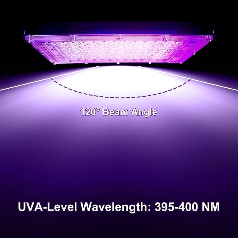 • 【120°reflective shell】Our 150W black light is equipped with a 120° ultra-high reflectivity reflector, which improves the efficiency of LED, reflects most of the invisible bulb, and projects with a wide angle to cover more areas, which is convenient for you to unfold in the dark activity.