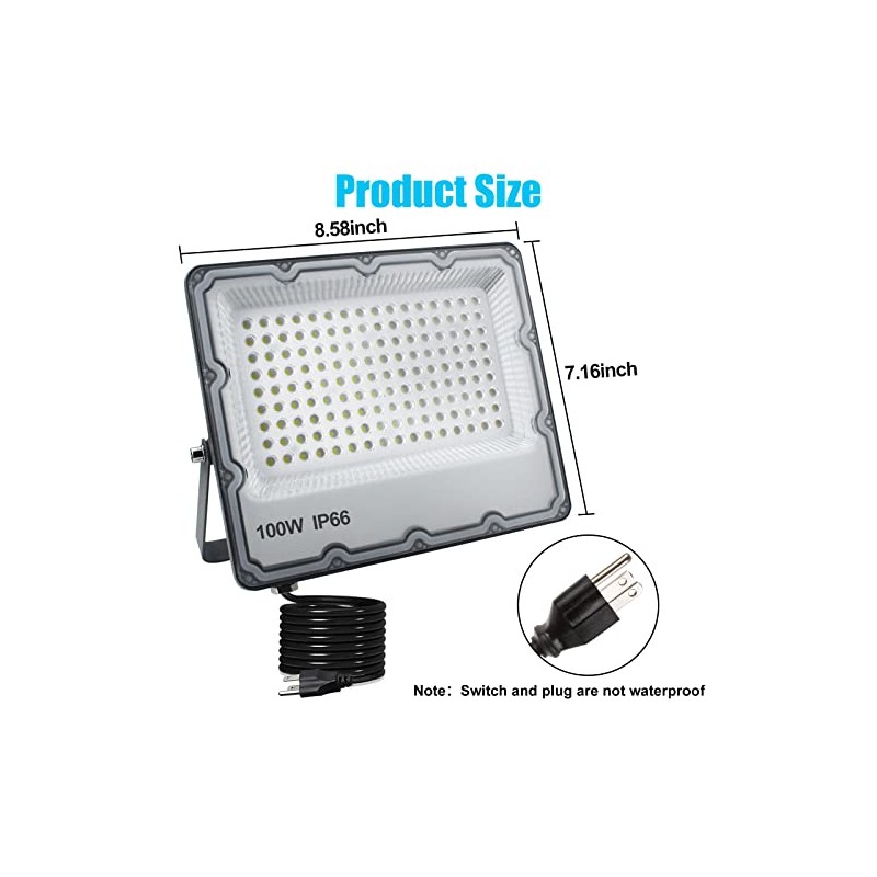 - ►【High Quality Material】 100W outdoor floodlight is made of high-quality aluminum + PC material, with a US standard plug, voltage: 110V 50/60HZ, with a 1.5-meter long cable, which is easy to use.
