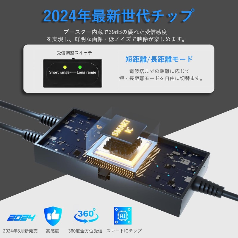 Indoor Antenna, Strongest TV Antenna, Short and Long Range Switchable & Next Generation Chip Built-In Booster, 420 KM Reception Range, 360 Degree Omnidirectional Reception, Both VHF/UHF, Terrestrial