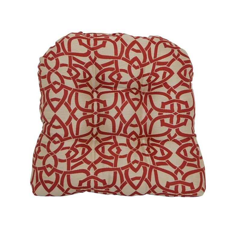 - Indoor Outdoor 5" Thick Reversible Patio Chair Cushion Classic Tufted U Shaped Rounded Back 19"W X19"D | Red Cream Print Woven Texture All Weather Fade UV Stain Water Proof Soft Plush Cozy